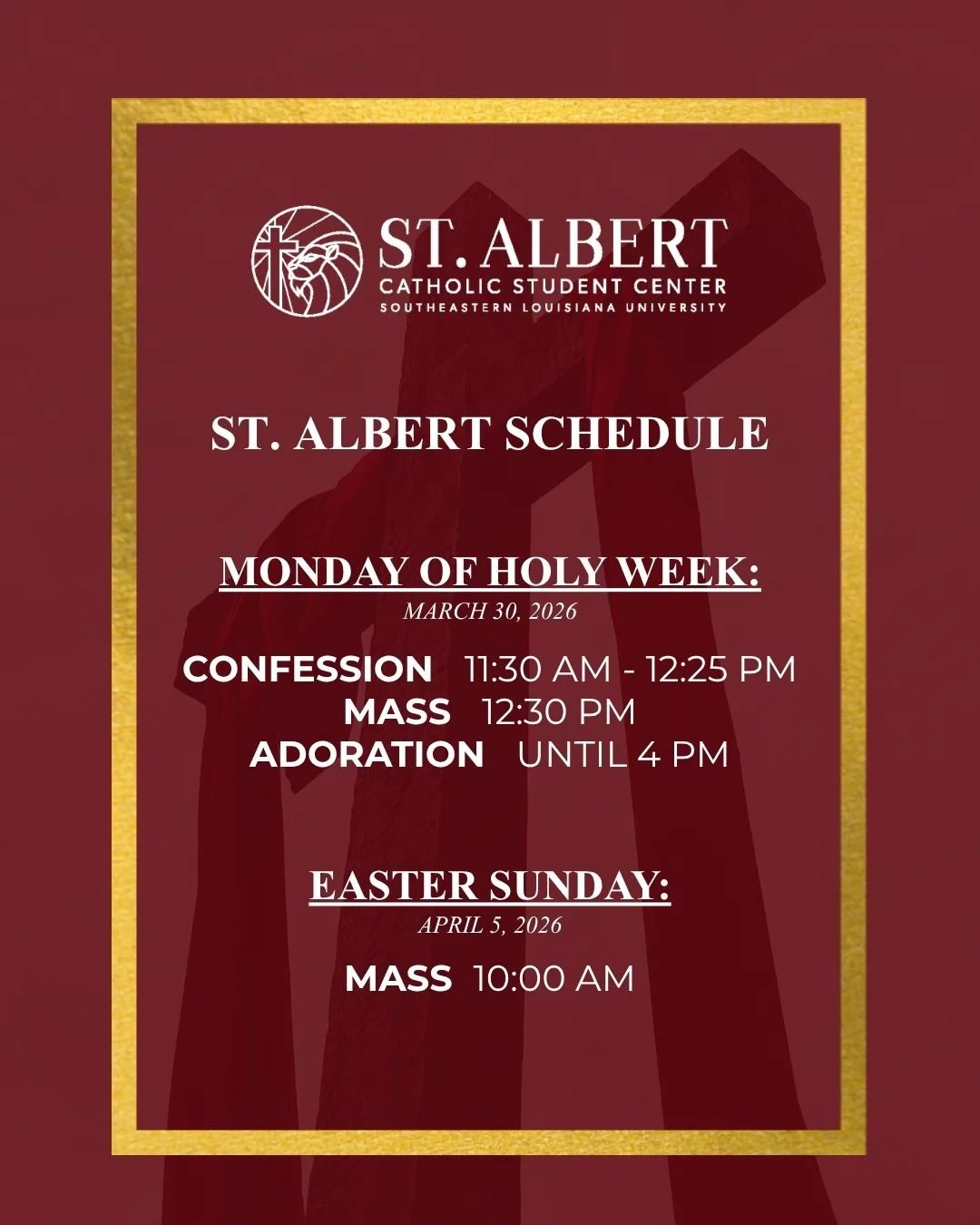 Welcome to the website of St. Albert the Great Chapel and Catholic Student Center in Hammond, Louisiana, serving Southeastern Louisiana University, the third largest university in the state, and second largest in the University of Louisiana System!